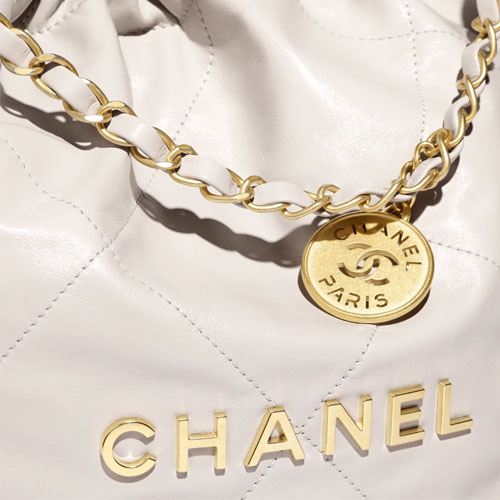 The design of Chanel 22 Small Handbag Light Gray is simple and practical, and the material and workmanship are made of calfskin, which is soft and wear-resistant. The interior of the bag is “leather + cotton” splicing, and the inside looks like a satin surface, which is both high-end and practical. The stitching and sewing process are very fine, and the seams are tight, reflecting the value of the big brand.
