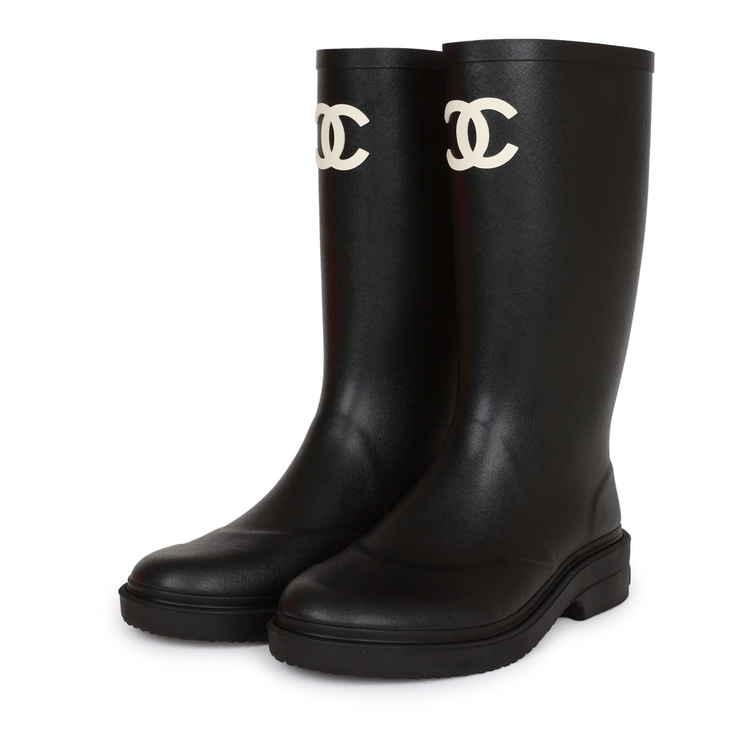 Chanel Black High Caoutchouc CC Boots 38