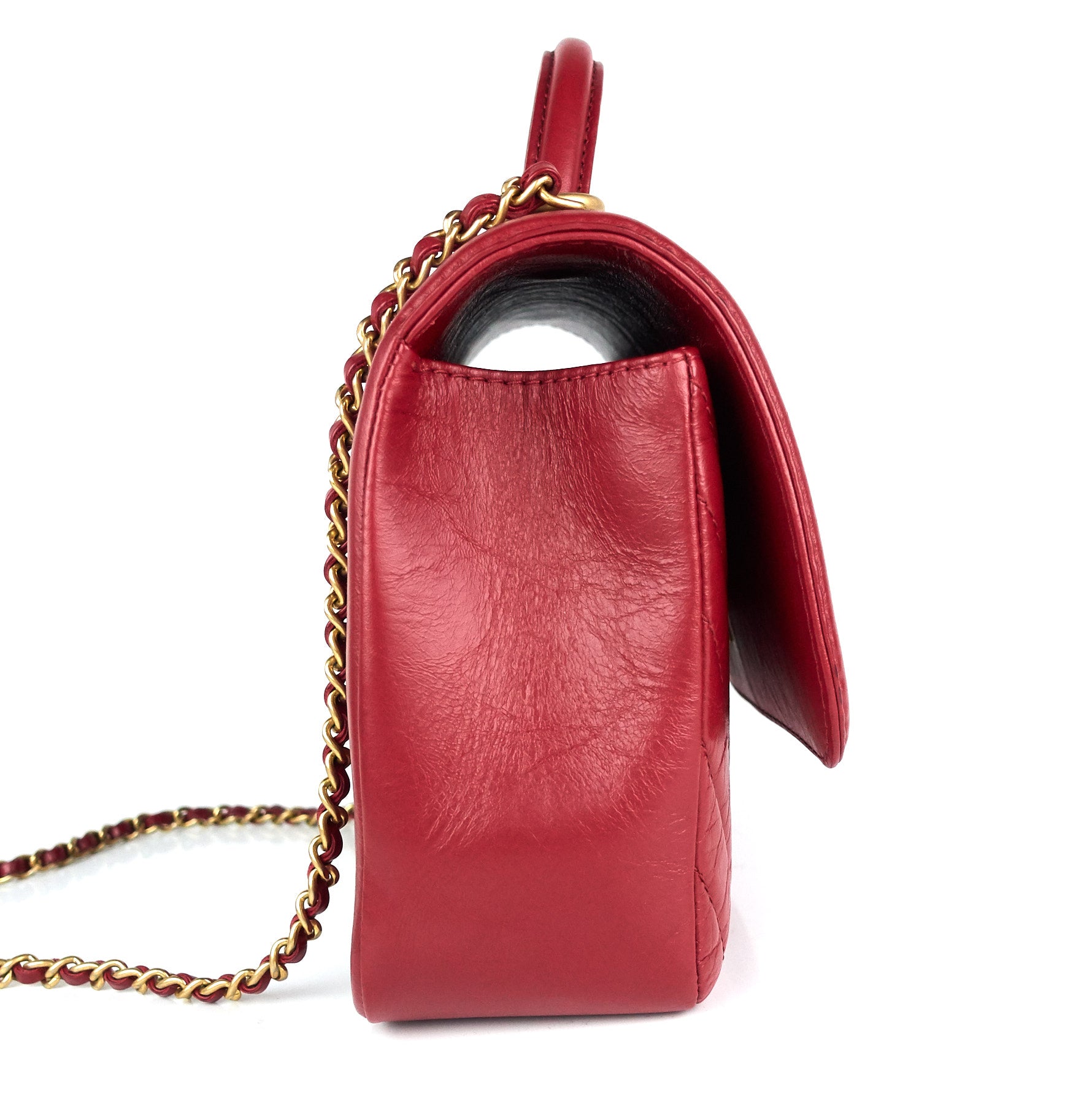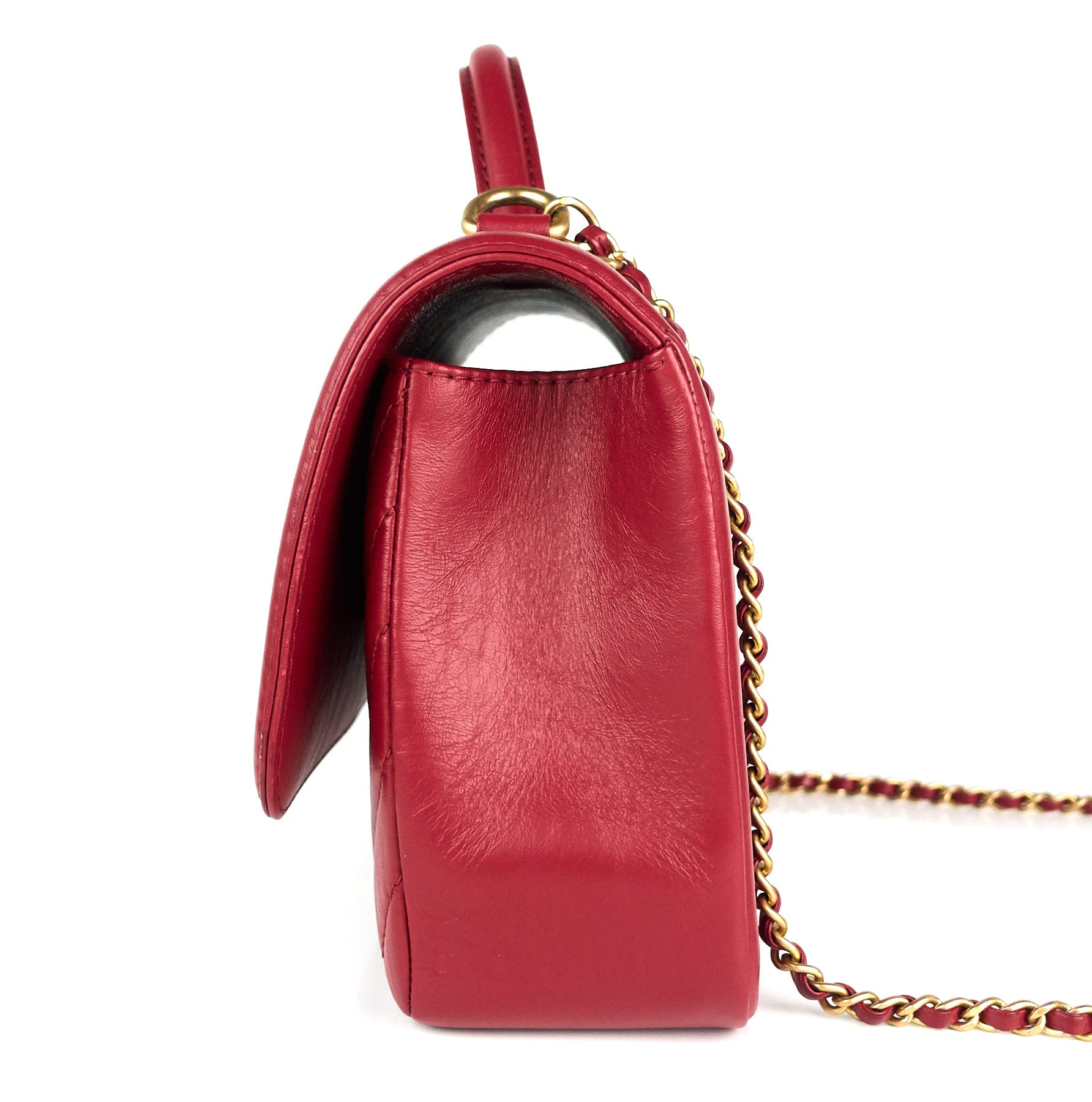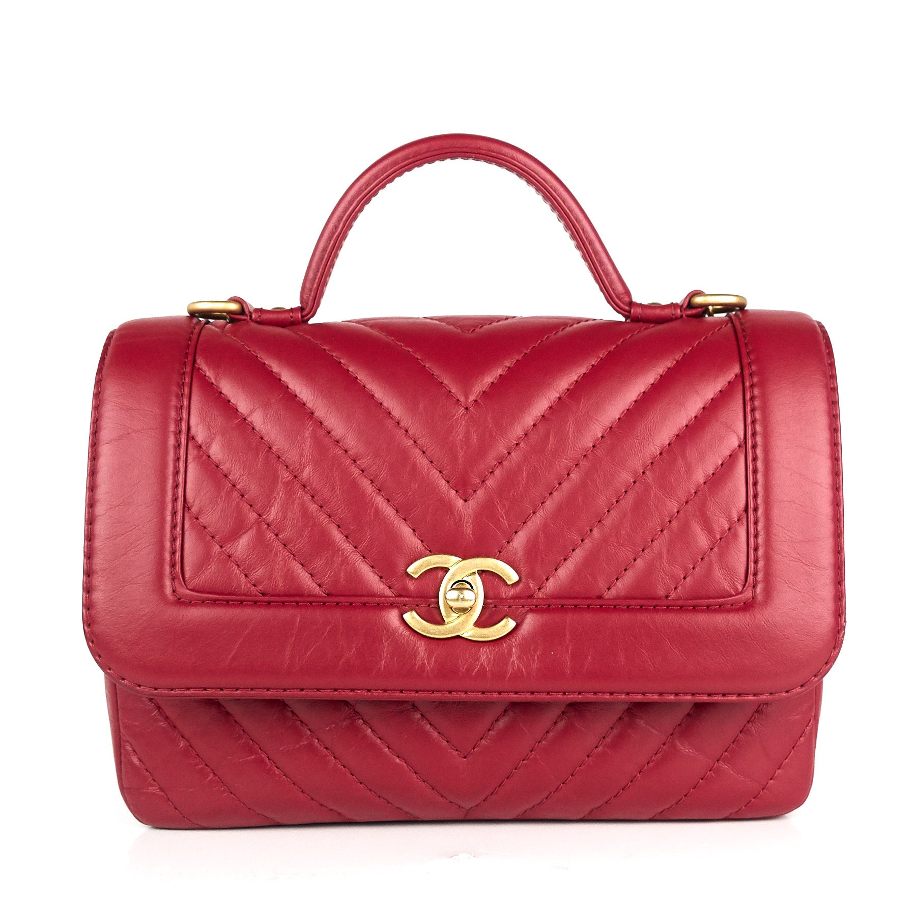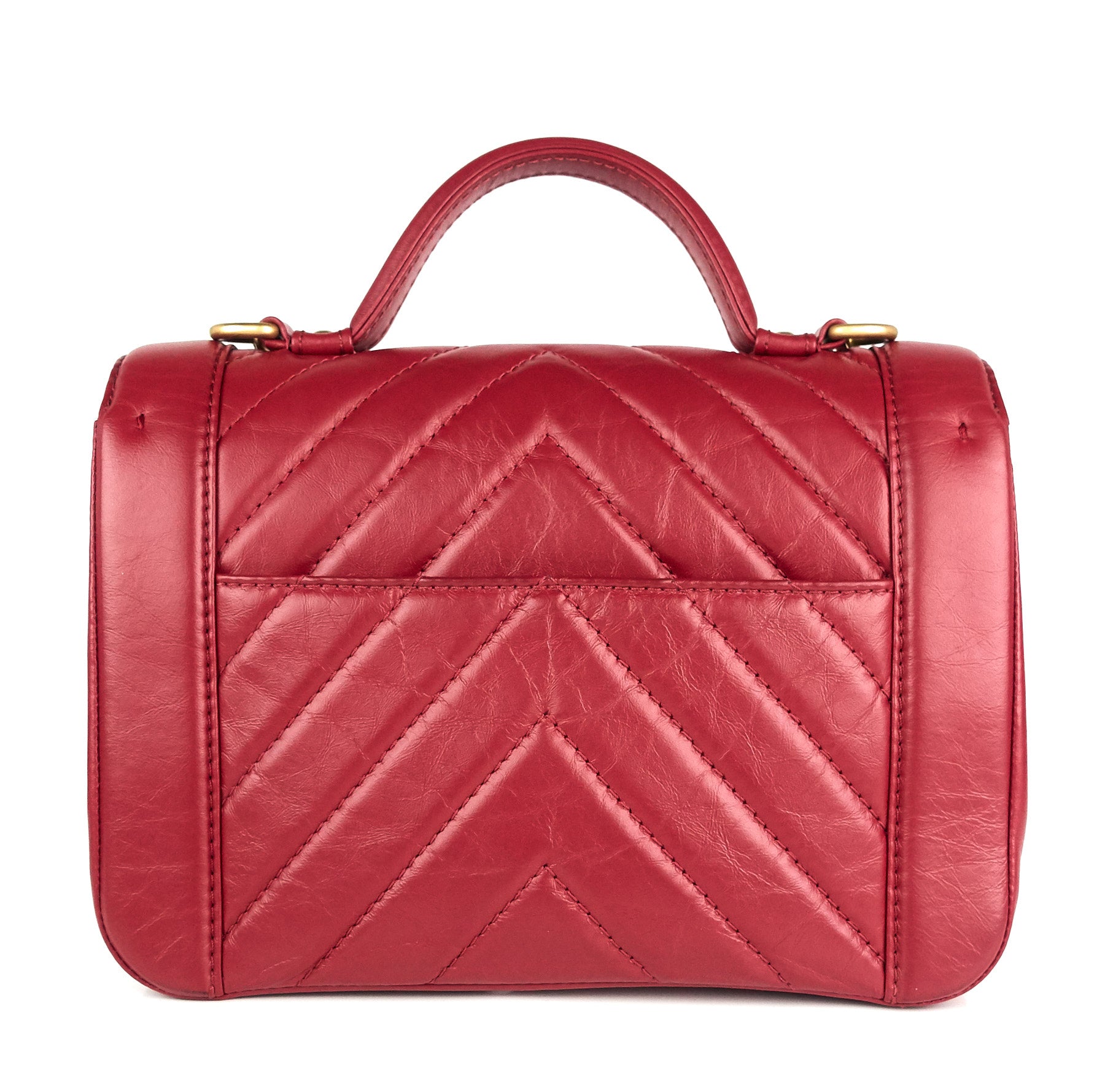 Quilted Chevron Calfskin Leather Top Handle Bag