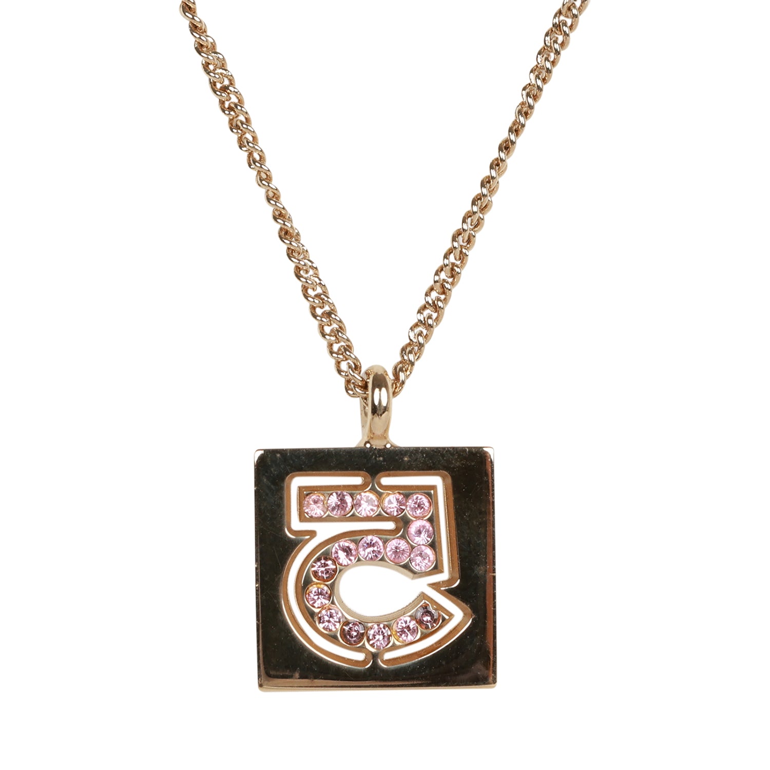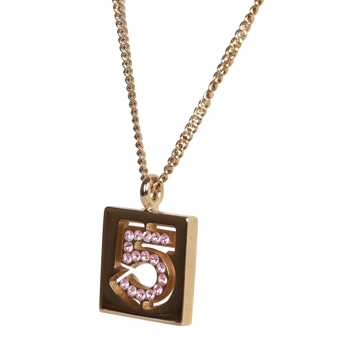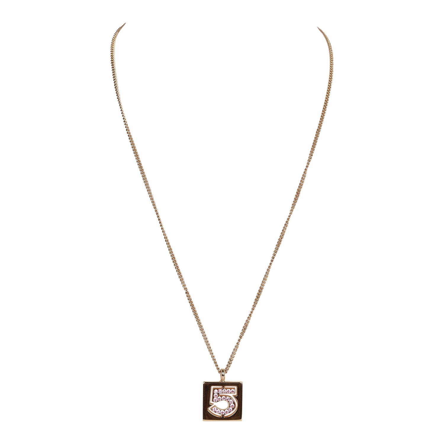 Vintage Chanel Vintage Pink No.5 Rhinestone Pendant Gold Necklace